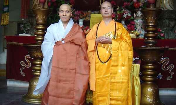宽容法师和慈愿法师大雄宝殿合影