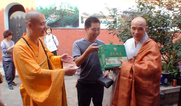 慈愿法师向宽容法师赠送礼物