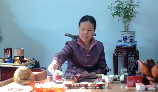 南京居士为韩国客人表演茶艺