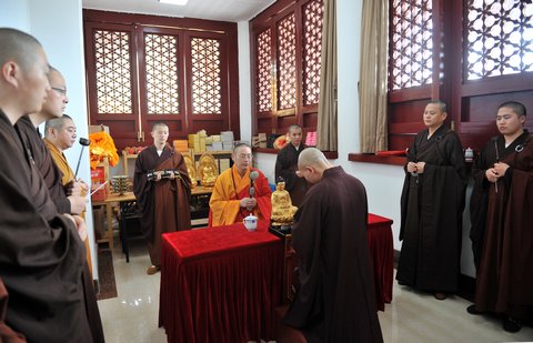图1:宝陀讲寺迎请引礼班遵循佛教丛林开大座传统迎请净旻法师