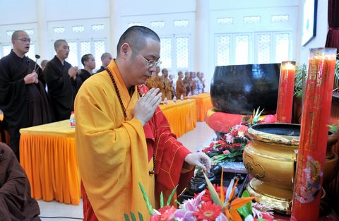 图3:讲座开始净旻法师上香礼佛