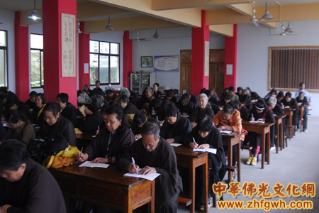 法会后开展了百人抄经活动,发清净心,祈祷世界和平。一些小朋友也在父母或爷爷奶奶的带领下抄经,种下一颗菩提种子。有的中学生也来参加抄经活动,以求中考、高考金榜题名。一位学佛多年的居士说:“在家多念佛,还是第一次参加集体抄经活动,很欢喜。这也是学习的机会,对《心经》有了更深的体会。如今世界灾难很多,也希望能通过抄经尽一些微薄之力。”(文/闫彬彬;图/显峰)
