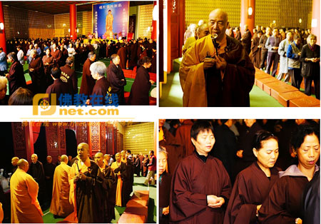 八月初一,法会净坛、起香后正式开始,妙湛法师讲解了东林佛号唱诵的特点、要领,照正法师宣布规则及纪律,随即,由妙湛法师领众绕佛经行。