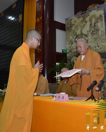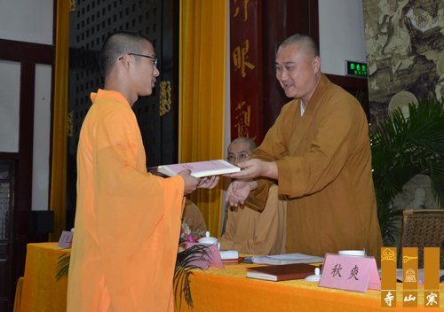 秋爽大和尚为寒山书院第七届第二学期期末考试优秀学僧进行颁奖