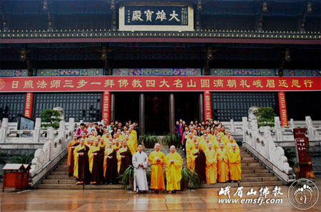 2012年10月11日,广东惠州礼佛禅寺日照法师率福建、广东等地500余名信众来峨眉山举行“三步一拜佛教四大名山圆满朝礼峨眉还愿行”活动。