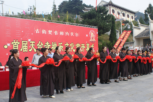 中秋、国庆期间,红安县天台寺彩旗飘飘,禅乐声声,车如流水,游人如织。随着湖北省民宗委负责人的一声吆喝,天台寺以“禅乐”为主要活动的“禅文化艺术节”正式上演。