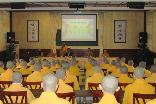 四川尼众佛学院2012年秋季开学典礼于2012年10月17日上午在四川尼众佛学院举行。省宗教局副巡视员于迎社、培训中心主任郑光荣及法规处相关同志出席了开学典礼。于迎社副巡视员作了重要讲话,他指出,尼众佛学院自开办至今的29年里,为四川省佛教界培养了大批优秀的宗教人才,为我省佛教事业作出了贡献。今天尼众佛学院又迎来了第12期新学员,希望同学们珍惜学习机会,严格要求自己,在学习中不断吸收和积淀宗教学识,在生活中长期实践和磨练宗教修行,自觉践行社会主义荣辱观,严格遵守和笃行宗教戒律,率先垂范,做政治上靠得住、学识上有造诣、品德上能服众的新时代教职人员。