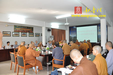 下午3时许,座谈会在闽南佛学院会议室举行,由闽院常务副院长界象法师主持。首先,界象法师对参学团一行的到来表示热烈欢迎;之后,双方各自介绍了参加本次座谈的成员,闽院代表有:副院长兼教务长传明法师,办公室主任界淞法师,副教务长中观法师、静安法师,办公室副主任悟源法师、际亘法师、延明法师,副教导长法仪法师,教研室副主任法缘法师、许长庵老师,教务室副主任明坤法师,女众部教导长助理戒净法师以及闽院网站工作人员。参学团一行还有:圆光佛学院辅导长性仪法师、教务组长性範法师、辅导老师见宗法师等。