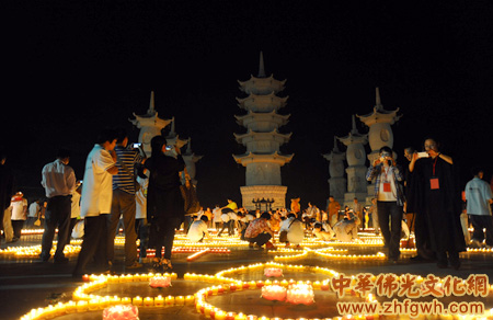 晚上,六祖寺大愿方丈主法,来自全国各地的禅佛文化爱好者一起点亮万盏明灯供奉六祖大师。各法师、居士、信众秉莲花酥油灯,绕寺祈福,最后齐聚在六祖八塔广场上。一时间,八塔广场灯火通明、祥光万丈,众人共同沐于六祖慧能大师智慧与慈悲的光明之中,真可谓“灵塔光开映大千、万盏明灯广蔓延;心明暗室顿除扫,性现玉宇天外天”。