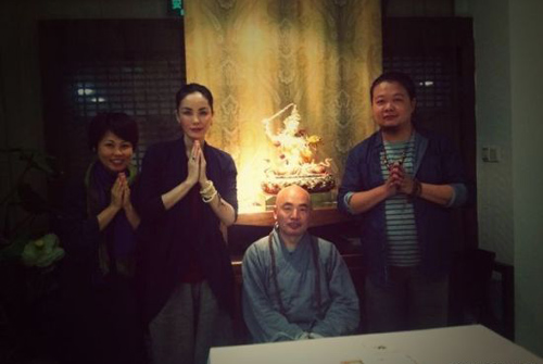 王菲信佛早已是人尽皆知的,而她也曾在自己隐退时期特意为第三届世界佛教论坛献唱了一首佛教歌曲《心经》 ,给人带来心灵的沉静。在王菲信佛之后曾经演唱过佛教咒语《弥勒佛咒》,并读诵佛经《金刚经》 ,因为其空灵干净的嗓音让大家过耳不忘,更赞其有净化心灵的效果。10月15日,王菲的微博上晒出了与济群法师的合影。照片中的王菲脱去明星光环,穿着素净简易,手上戴着佛珠,双手合十的与好友站在戒幢佛学研究所所长、闽南佛学院研究生导师济群法师的身后,甚是庄严,虔诚的神态再次引起了网友们的围观,让不少网友和粉丝赞叹不已。