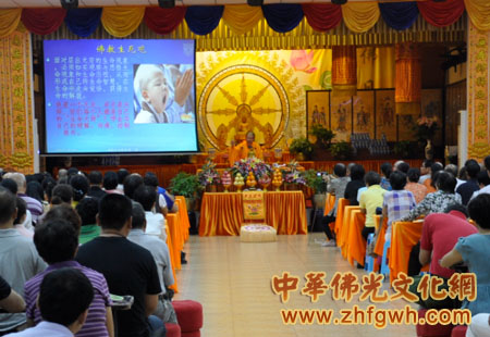 讲座时间将持续两天,圣凯法师幽默的语言艺术风格,博得了现场信众居士们的阵阵掌声。