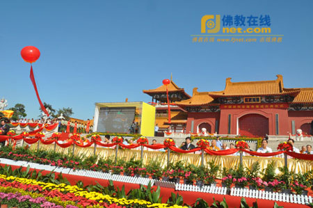 在庆典仪式上,莫宗通局长、朱民市长分别讲话,徐州市委常委、市委统战部张赴宁部长致欢迎辞。星云大师、心澄法师分别讲话并向佛教信众开示。政界领导和高僧大德并为宝莲寺落成剪彩。