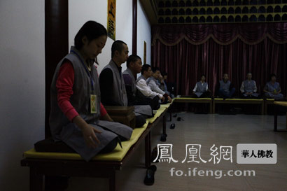 参加太仓市双凤寺短期出家体验营的营员在禅堂坐香。(图片来源:凤凰网华人佛教摄影:王琬)