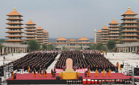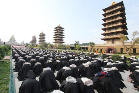 台湾佛陀纪念馆中秋3600人朝山 为佛教胜地写历史