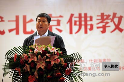 北京宗教局副局长李胜勇在开幕式上发言(图片来源:凤凰网华人佛教 摄影:印媛)