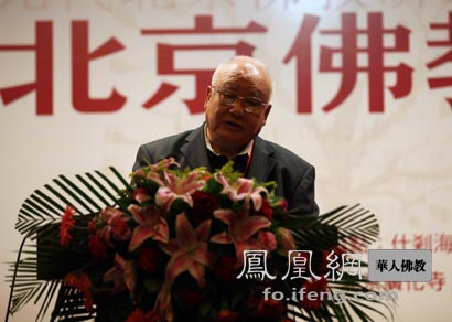 中国社会科学院荣誉学部委员、北京佛教文化研究所研究生导师杨曾文教授在开幕式上发言。(图片来源:凤凰网华人佛教 摄影:印媛)