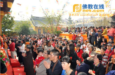 当天上午10时出席庆典仪式的领导和天台寺监院圣明法师、大德居士代表一起为千手观音佛像剪彩。随后,千手观音佛像开光法会在观音殿举行,由江苏省佛教协会副会长、无锡市佛教协会会长能开法师为法会主法,天台寺两序大众8位法师加持法会,法会于上午11时圆满。来自江苏本省、浙江、福建、广东、香港、澳门等地约2000余居士信众参加了这一盛会。(图、文:唐明)