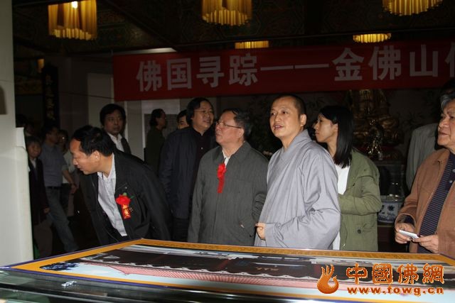 原市政协副主席窦瑞华先生、原市政府副秘书长叶贵本先生,原重庆警备区副司令陈宝林将军,九龙坡区区委常委、统战部部长王元开先生,九龙坡区人大常委会常务刘瑞江副主任、南川区人民政府郑远学副区长,九龙坡区区政府区长助理陈祥先生,九龙坡区政协副主席范国明先生,重庆市江北区鸿恩书画院院长李琳女士,四川美院老教授协会会长王大同先生,中国重庆人民政府文史研究员、中国美术家协会会员漆光先生,重庆市现代禅画院院长高济民先生,西南大学宗教研究所所长杨玉辉先生,市民宗委三处调研员史金山,重庆艺术研究院院长段明,九龙坡区民宗局局长刘瑜,涪陵区民宗办主任安钢,綦江区民宗局党组书记罗维裔,南川区民宗局局长曾祥友,重庆市佛教协会副会长朗观法师。永川区佛教协会会长朗性法师,九龙坡区龙风寺住持海觉法师以及南川区政府办公室、南川区委统战部、南川区旅游局、南川区文广新局、南川区党史方志办、南川区金佛山景区管委会、南川区公安局、南川区文物所等有关部门的主要负责人,九龙坡区有关部门的负责同志,毗邻兄弟区县宗教部门的负责同志,重庆书画界的朋友,企业家代表,重庆日报、重庆晨报、重庆商报、重庆时报、旅游新报、重庆电视台、南川区电视台、南川日报社、九龙坡区电视台、大渝网、凤凰网、中国佛网等新闻媒体界等社会各界的领导和朋友近300人出席了佛国寻踪拓片展开幕仪式。
