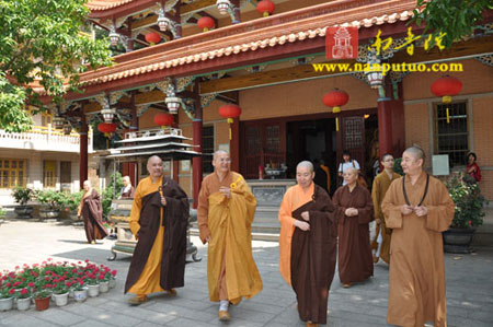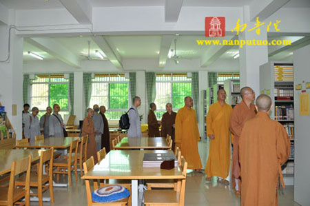 女众部陪同接待的还有:闽院办公室副主任、紫竹林寺副寺悟源法师,闽院教研室副主任法缘法师、教务室副主任明坤法师、女众部教导长助理戒净法师、办公室干事道海法师等。