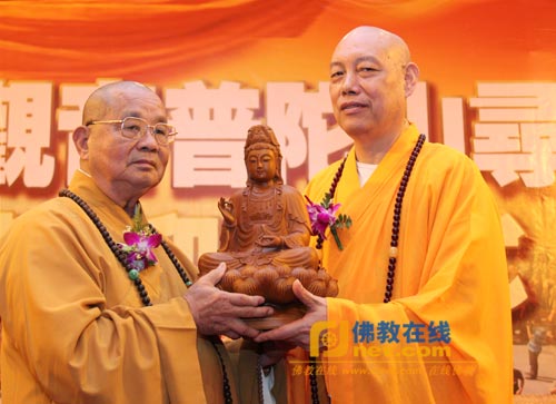 道慈法师代表普陀山向圆宗长老赠送礼物