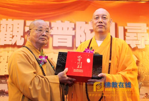 道慈法师向台湾南海观音文教基金会会长吴天池博士赠送礼物