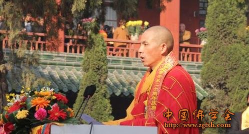 中国佛教协会常务理事、河南省佛教协会副会长、河南省开封市大相国寺方丈心广大和尚致辞