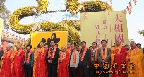 中国佛教协会副会长、河南省佛教协会会长、少林寺方丈永信大和尚;中国佛教协会副秘书长、河南省佛教协会副会长、洛阳白马寺方丈印乐大和尚;中国佛教协会常务理事、河南省佛教协会副会长、河南省开封市大相国寺方丈心广大和尚,以及来自部分省市诸山长老,大德高僧及四众弟子等参加了庆典活动。