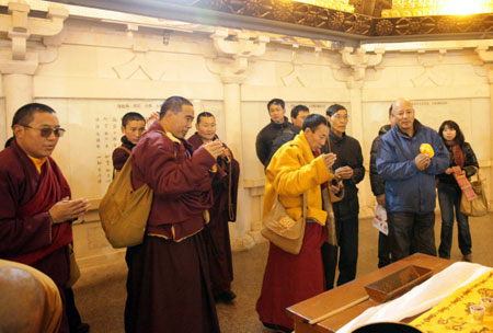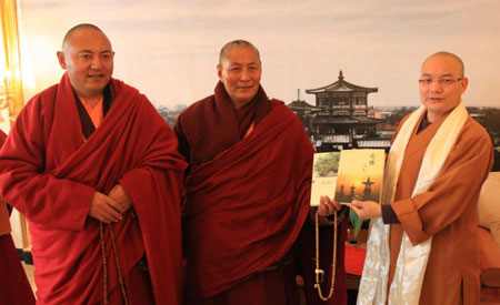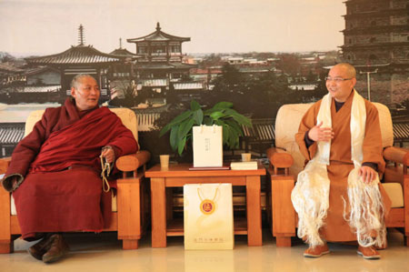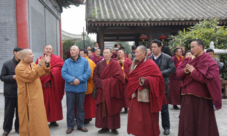2012年11月28日,青海省班玛县委统战部部长仁杰先生带领20位大喇嘛在陕西省委统战部魏华荣调研员的陪同下参访法门寺,受到法门寺监院贤空法师的热情接待。