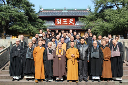 2012年11月27日上午9时,由日本曹洞宗大本山永平寺副监院丸子孝法率领的参拜团一行39人到祖庭天童禅寺礼拜。浙江省佛教协会副会长、宁波市佛教协会会长、天童禅寺方丈诚信法师在大鉴堂接见了参拜团一行。随后,宾主进行了友好交谈。