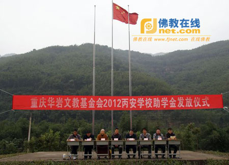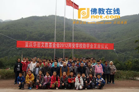 2012年11月13日,受重庆市华岩寺方丈、华岩文教基金会理事长道坚法师委托,华岩文教基金会秘书长张宏林,华岩寺弘法部部长妙永法师及基金会工作人员一行到红色革命老区贵州赤水丙安学校发放‘2012年华岩助学金’,丙安学校各年级家庭贫困品学兼优的30位学生获得助学金。