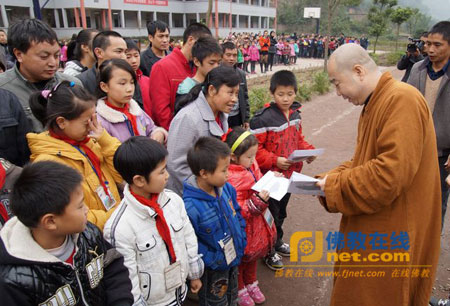 法师为红色革命老区贵州赤水丙安学校发放‘2012年华岩助学金