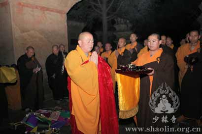2012年11月14日,农历十月初一,为中国的传统节日“寒衣节”(又称“祭祖节”)。按照中华民族传统和佛教仪轨,少林寺僧众到塔林祭奠历代祖师。
