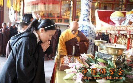 四众弟子依次排班,虔诚恭敬的瞻仰佛陀真身舍利、以及八大弟子的真身舍利