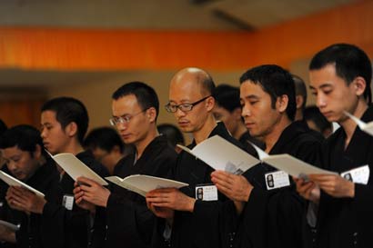 2012年11月9日至11日,弘法寺第十九期八关斋戒圆满举行。时隔近一年,八关斋戒重新回归,信众踊跃报名参加,共有350名戒子参加了本次殊胜八关斋戒。在弘法寺方丈印顺法师及美国菩萨寺慧光法师的带领下,戒子们亲身体验了包括禅修、出坡等出家人的生活,对佛法有了更深刻的领悟。