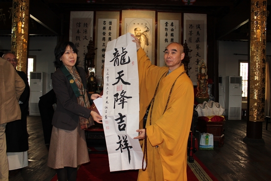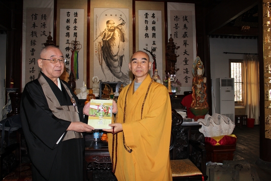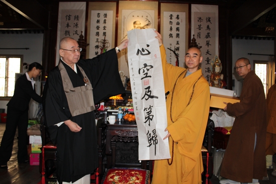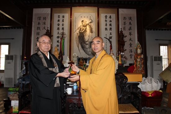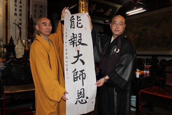 大谷哲夫感谢大和尚热诚的接待,道元禅师入中求法,今日礼祖,能为两国的关系加强、两国佛教界的友谊做一些贡献,已经非常感恩。中日两国在互相友谊的前提下,我们也创办了“日中禅文化交流会”,希望两国禅文化交流更加常规化。道元是日本人,如净禅师中国人,佛教的传播与弘扬是没有国界的,我们现在也做了很多佛教文化传播的活动,并希望诚信大和尚能够到日本来弘扬曹洞宗文化,帮助我们弘法。