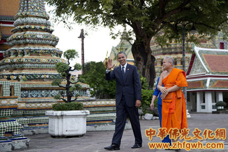 美国总统奥巴马亚洲之行首访泰国卧佛寺