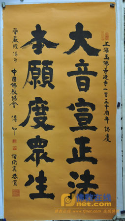 中佛协会长传印长老为玉佛禅寺130周年庆典题词