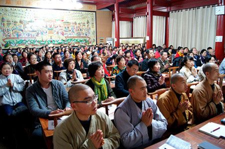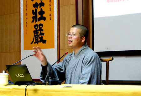 2012年11月3日晚,为了感谢北京佛教文化研究所义工对佛研所多年来的发心与护持,佛研所执行副所长、清华大学教授圣凯法师在广化讲堂举办《业力与愿力》的主题讲座。北京佛教文化研究所办公室主任定明法师及诸位师僧参加讲座。