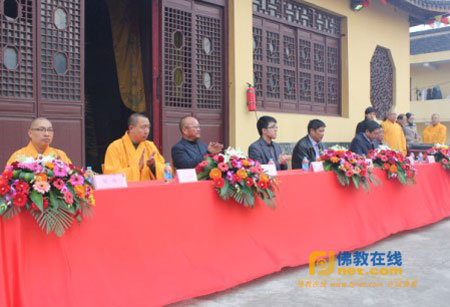 江阴市民宗局宗教科周翀先生,周庄镇统战委员殷良忠先生,周庄镇长南村党总支书记孙长福先生,无锡市佛教协会副会长、江阴市佛教协会副会长林华居士等江阴市佛教协会全体领导和周庄镇、长南村的相关领导与无锡市佛教协会理事、江阴月城佛光寺住持风悦法师,江阴佛光寺堂主龙胜法师,江阴市东平寺监院觉勇法师等法师出席庆典。
