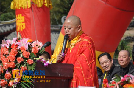 升座仪式结束后在泰清寺观音文化园举行了泰清寺重建20周年庆典,向阳村党总支书记李国良先生致欢迎词。泰清寺方丈永常法师汇报了泰清寺重建20年来在各级政府的关心支持下取得的成果,并介绍了泰清寺的长远规划。