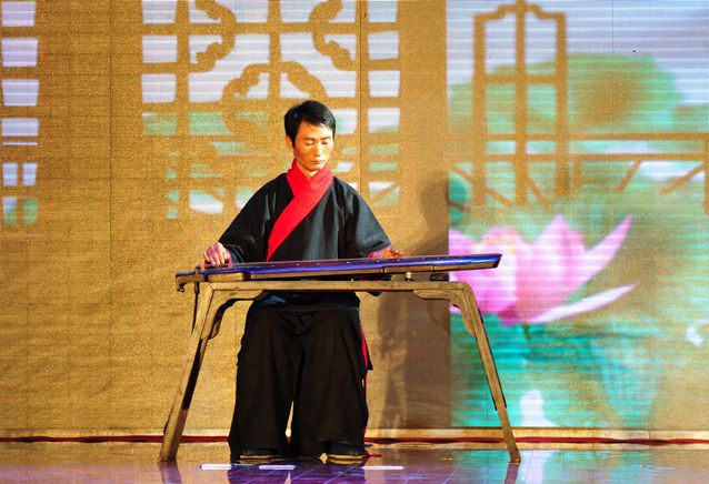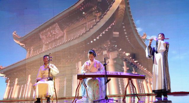慧日洒甘露——古筝、笛子、二胡合奏《峨嵋金顶》,表演者妙谦等。