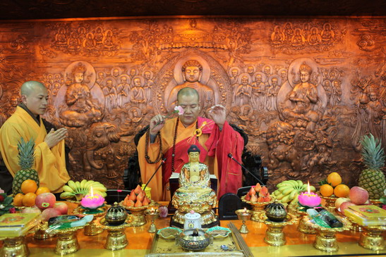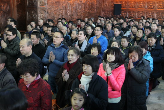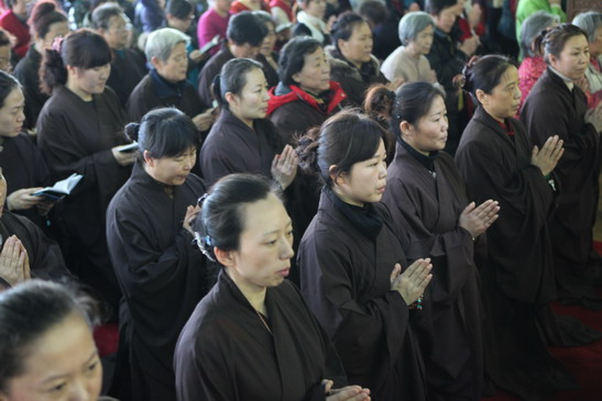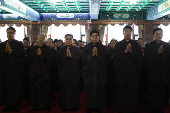 2012年12月29日上午9:30,本寺方丈常藏大和尚在新综合楼2楼为来自北京周边的善信3000余人传授三皈、五戒。