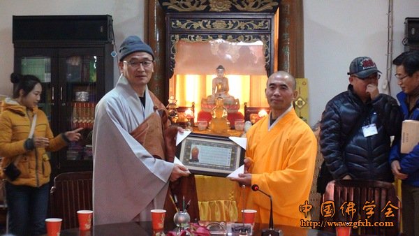 宏铭法师说:韩国佛敎曹溪宗代表了韩国佛敎1000多年的历史传统,与中国佛教的关系源远流长,非常欢迎大家来参访祖庭,虽然我们处于不同国家,但我们是一颗心,这一点在刚才诵经祈祷共修中无比的法喜里可以感受到。然后宏铭法师简单介绍了三祖禅寺的历史以及未来的发展方向,同时也介绍了正在建设中的二期工程,强调要把禅宗祖庭建设成为今日的精品,明日的文物,并说建设的重点是放在软体上,把人才培养摆在第一位,至此,法师还提到了三祖禅寺今年的短期出家班与才结束不久的精进禅七。总之,目的就是祖庭要给大众创造一个良好的学修平台。