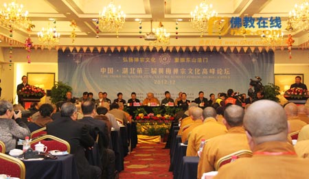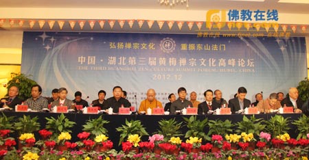 2012年12月15日,中国·湖北第三届黄梅禅宗文化高峰论坛在湖北黄梅盛大开幕。此次论坛主题为“弘扬禅宗文化,重振东山法门”。当天来自内地、港澳台地区及美国、韩国、日本、新加坡的300多位知名专家学者,聚集在中国禅宗发源地黄梅话禅论道。此次论坛由湖北省民族宗教事务委员会、黄冈市人民政府主办,黄梅县人民政府、黄冈市民宗局、湖北省佛教协会、黄冈禅宗文化研究会承办,由四祖寺、五祖寺、老祖寺协办。
