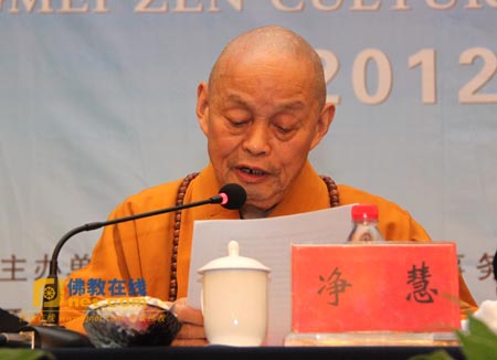中国佛教协会副会长、黄梅四祖寺方丈净慧长老发表讲话