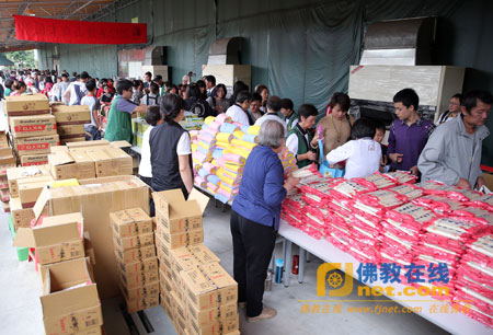 2012年12月16日上午,台湾法鼓山农禅寺举办岁末关怀活动,向被关怀家庭发放年终慰问金以及白米、奶粉、水果、面条等生活物资,现场聚集了上千位民众,一同接受佛法的祝福以及十方大众的关怀。