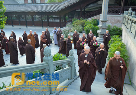 2012年12月14日下午,风轻云淡,天清气和。浙江省温州太平寺合寺尼众排班列队,在太平寺住持万如法师的带领下,前往山门口迎接福建省太姥山平兴寺住持界诠法师前来太平寺讲经说法。