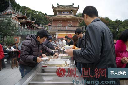 法会后中午在观音殿前自助素斋(图片来源:凤凰网华人佛教)