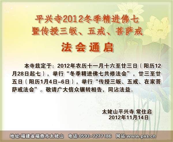 【平兴寺2012年冬季精进佛七暨传授三皈、五戒、在家菩萨戒法会通启】