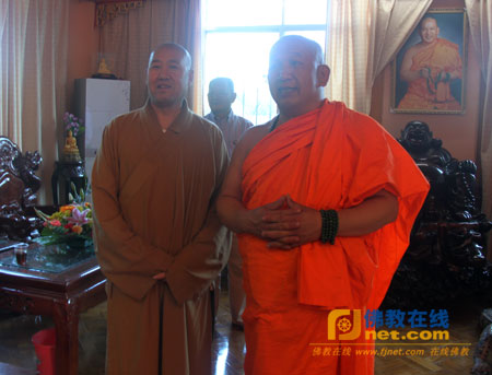 妙江法师与祜巴龙庄勐长老在总佛寺长老寮内合影留念